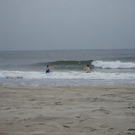 "source_global_caption": "Two people in an ocean playing with a yellow Frisbee.",