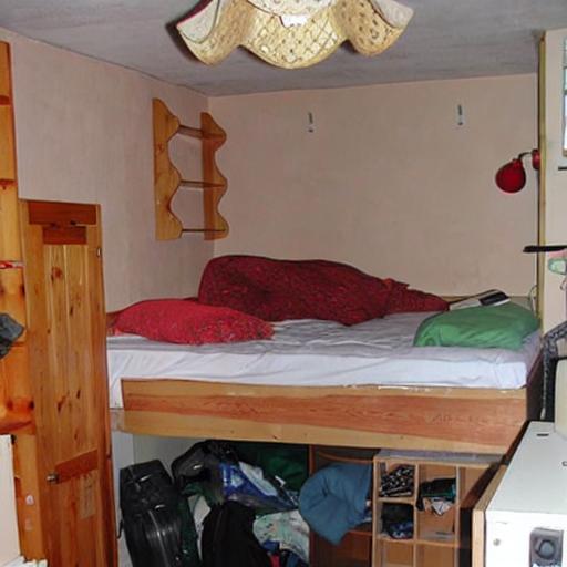 "source_global_caption": "A bed suspended over a pile of luggage.",
