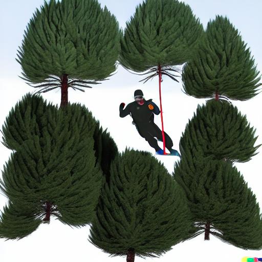 "target_global_caption": "A man scuba diving down a snow covered conifer hillside."