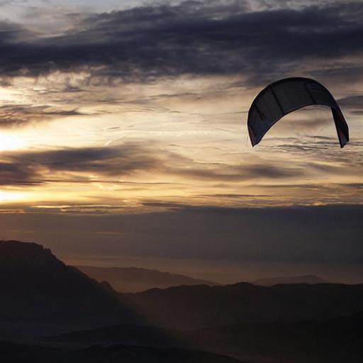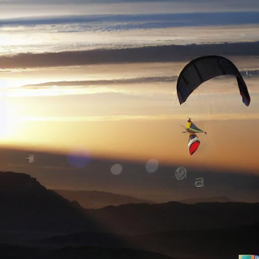 "source_global_caption": "Two parasailers soar high in the morning sky, like giant sea birds.",