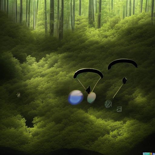 "target_global_caption": "Two parasailers soar high in the morning sky above a lush forest, like giant birds."