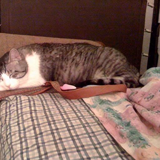 "target_global_caption": "Cat sleeping on top of a suitcase that is resting on top of a table, licking its nose."